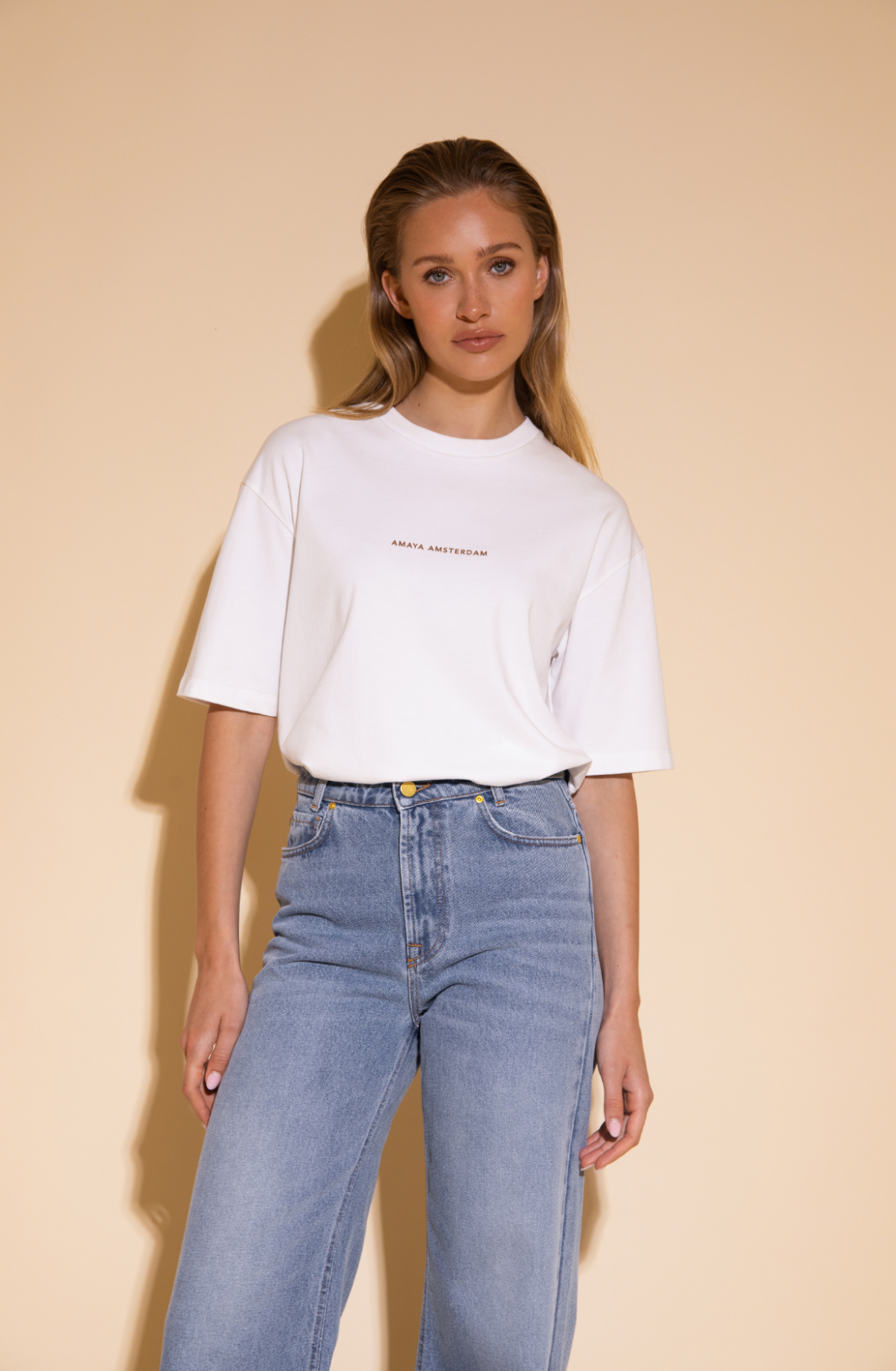 Productinformatie: Het Bailey T-Shirt is 1 van onze favoriete basic items. Dit is een T-Shirt die je altijd in je kast wil hebben. Een boxy fit. met korte wijdere mouwen. Het 'Amaya Amsterdam' logo is subtiel op de voorkant te zien. Halsijn is aangesloten. Eindeloos te stylen.