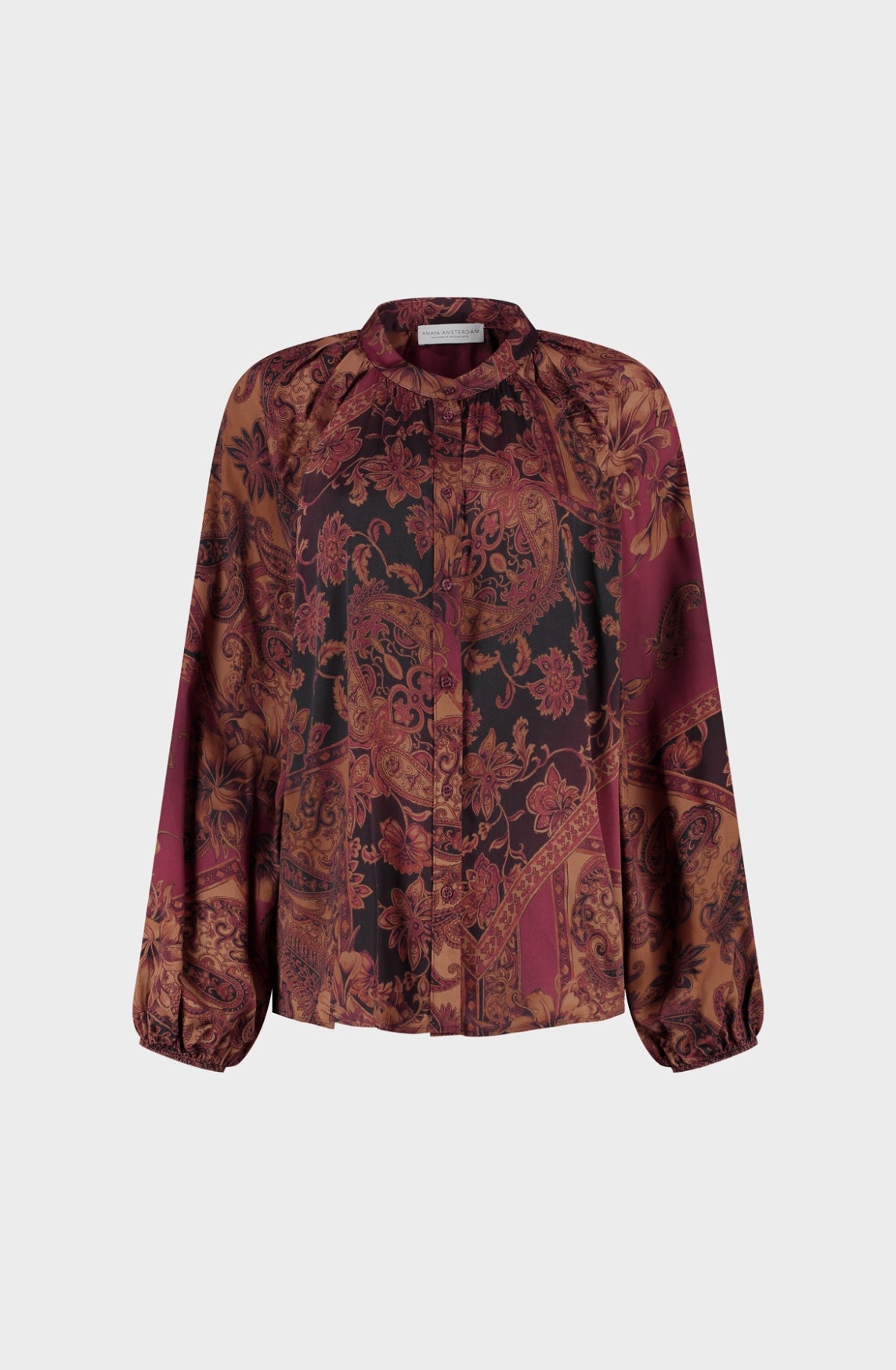 Productinformatie: De Colette Blouse straalt pure elegantie uit dankzij de rijke paisley print in diepe bordeaux- en bruintinten. De luchtige stof valt soepel om het lichaam en zorgt voor een vrouwelijke en verfijnde uitstraling. De blouse heeft een knoopsluiting en elegante ballonmouwen met licht elastische manchetten.