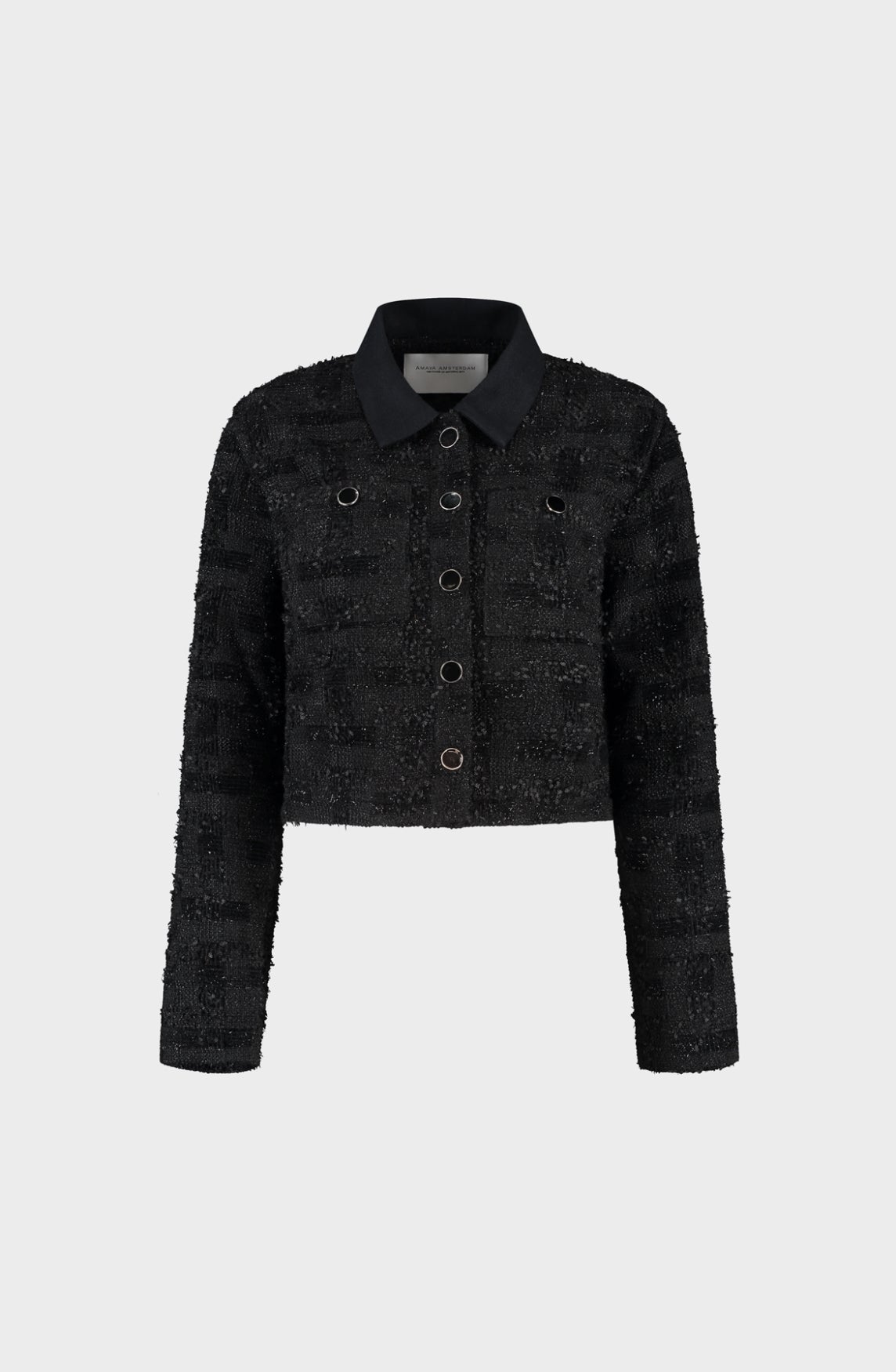 Productinformatie: Onze zwarte bouclé Daisy Jacket is een tijdloze must-have. Gemaakt van een rijke, gestructureerde stof met subtiele glans en afgewerkt met zilverkleurige knopen voor een moderne twist. De cropped fit en klassieke kraag zorgen voor een elegante maar edgy look – perfect voor elke gelegenheid. De zwart met zilveren knopen aan de voorkant geven een leuk detail. Het Daisy Jacket heeft twee borstzakken en een zwarte kraag.