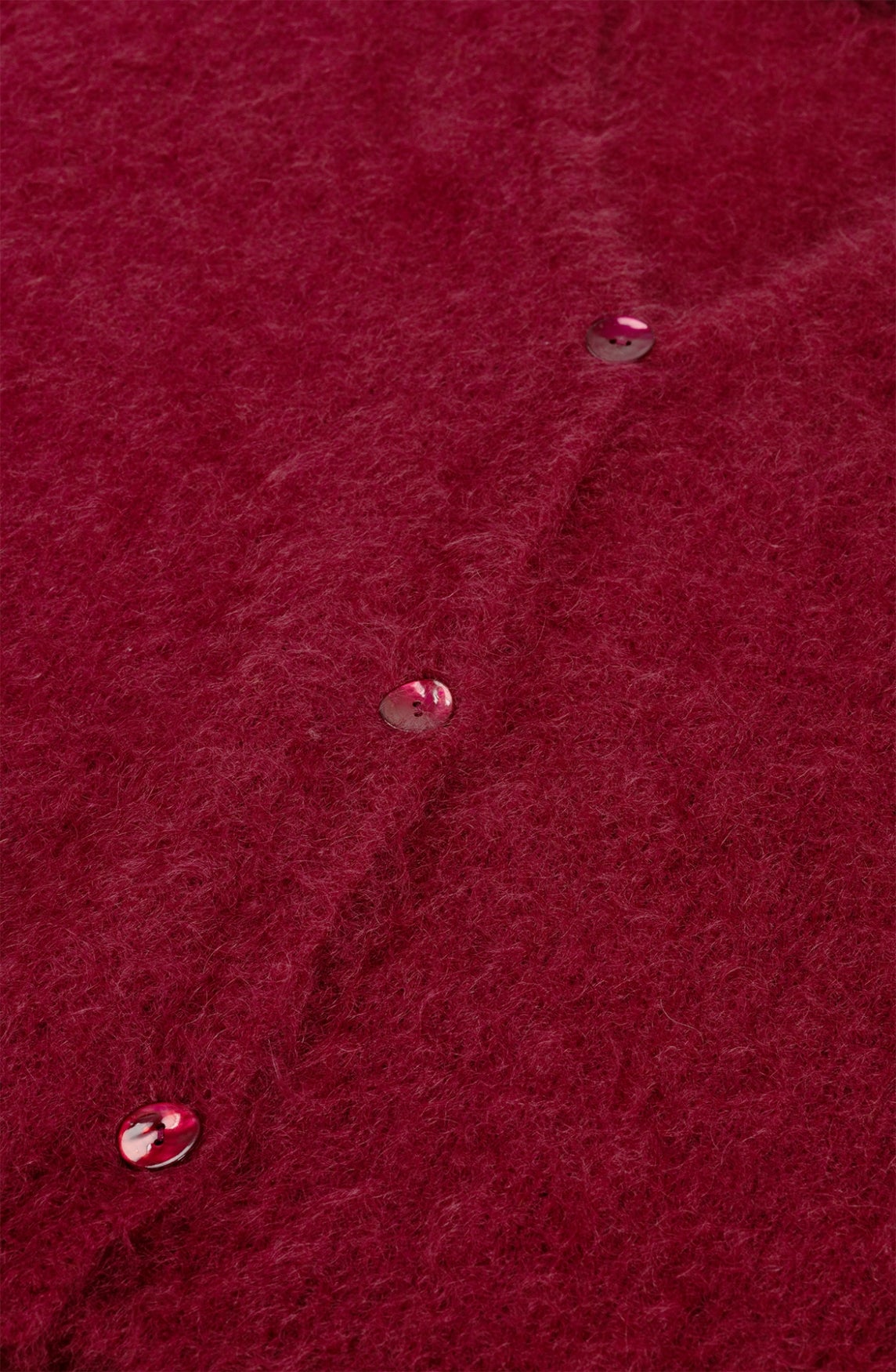 Productinformatie: De Roos knitwear is het perfecte warme vest dit seizoen. Beschikbaar in Camel, Bordeaux en lichtblauw. Het vest heeft een V-Hals en knoopsluiting aan de voorkant. De pasvorm valt ruim om je heen. En de mohiar wol mix geeft het item een heerlijke warmte.
