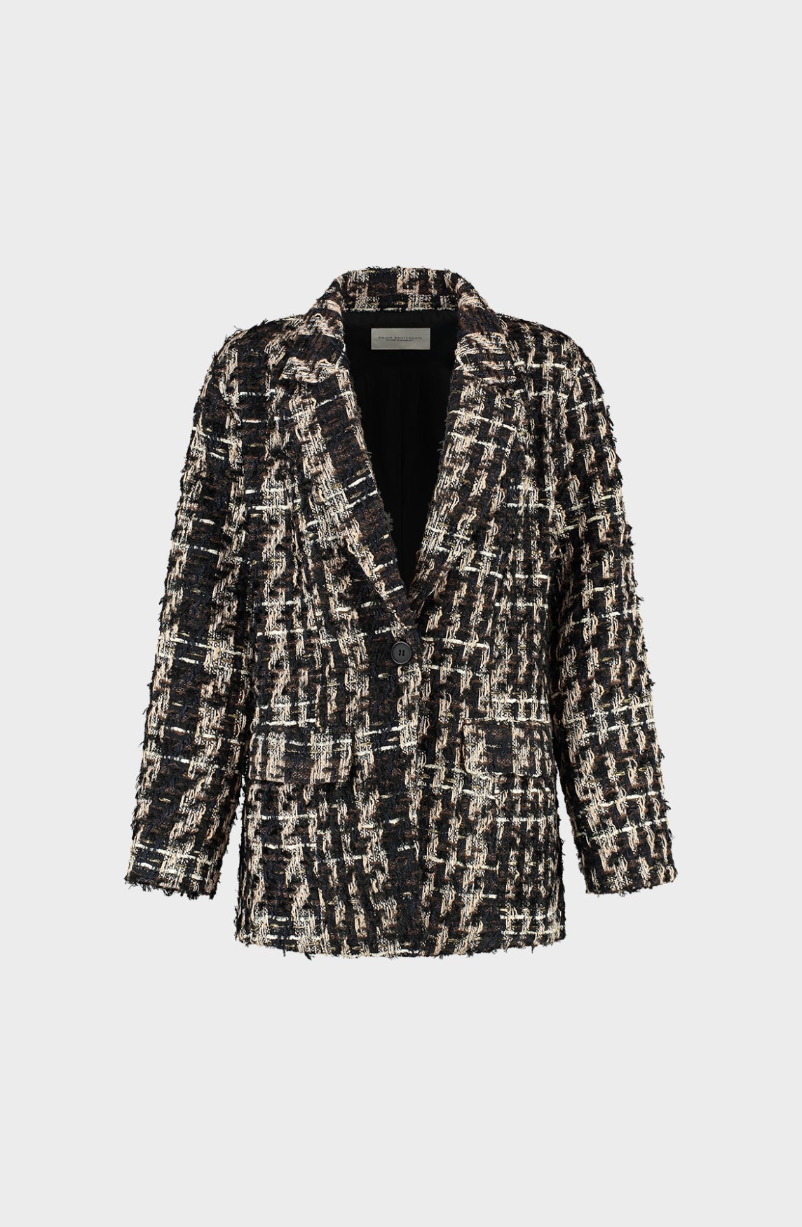 Product information: The Momo Blazer has the perfect blazer fit. Nicely fitted and the perfect length. The unique boucle material gives a special touch to the blazer. The blazer has two flap pockets and a button at the front to close.